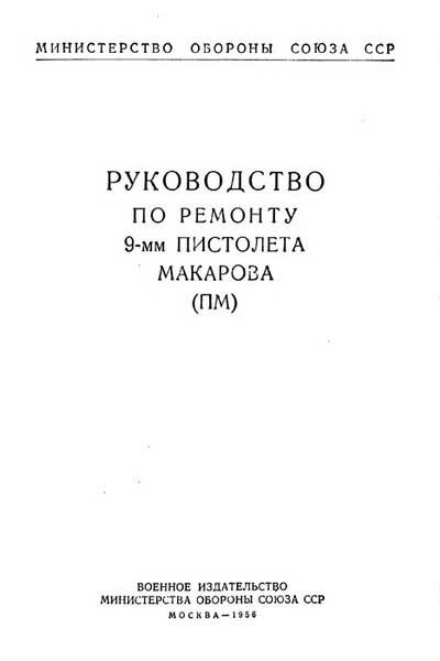 Руководство по ремонту 9-мм пистолет Макарова (ПМ) (изд. 1956), формат: djvu |