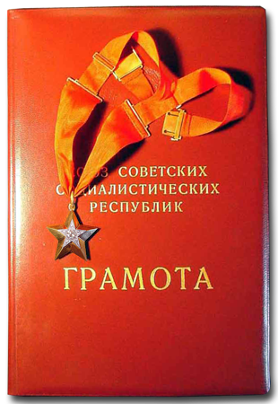 При награждении Героя Советского Союза орденом Ленина и медалью “Золотая Звезда” ему одновременно с орденом и медалью вручается грамота Президиума Верховного Совета СССР.