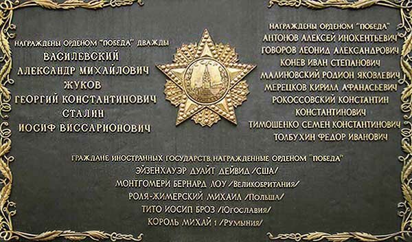 Мемориальная доска в Кремле с именами кавалеров ордена "Победа"