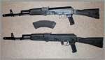 АК-74М Модификация АК-74, имеет новое двухкамерное дульное устройство с одинаковыми камерами, менее подверженное загрязнению, с улучшенным креплением на стволе; планку («ласточкин хвост») для крепления ночных, оптических или коллиматорных прицелов (включая универсальный стрелковый 1П29); усиленную (без ребер жесткости) крышку ствольной коробки; упор направляющего стержня возвратной пружины выполнен так, чтобы удерживать крышку ствольной коробки от срыва при стрельбе из подствольного гранатомета; пластмассовый, складываемый влево приклад, усиленный продольным металлическим стержнем; более удобные пластиковые цевье и ствольную накладку.