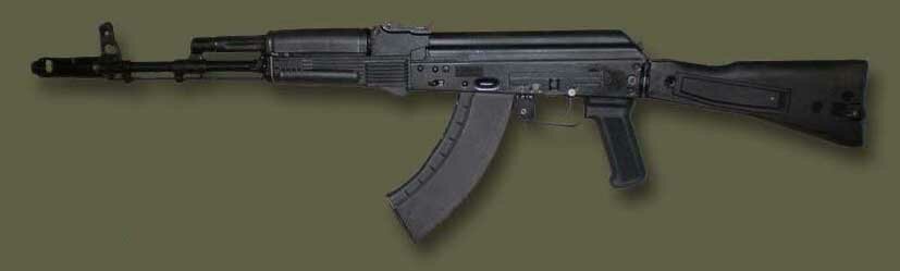 АК-74Н «Ночной» вариант с боковой планкой для крепления инфракрасных ночных прицелов. Магазины, первоначально изготавливаемые из оранжево-коричневого пластика, стали делать из черного пластика.