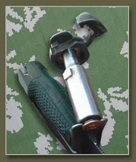 После выстрела необходимо вынуть ствол из рукоятки, зацепами перекрестья извлечь стреляную гильзу из патронника (она нагрета и прижата пороховым газом к стенкам патронника). У тренированного стрелка время перезарядки оружия - не более 20 секунд.