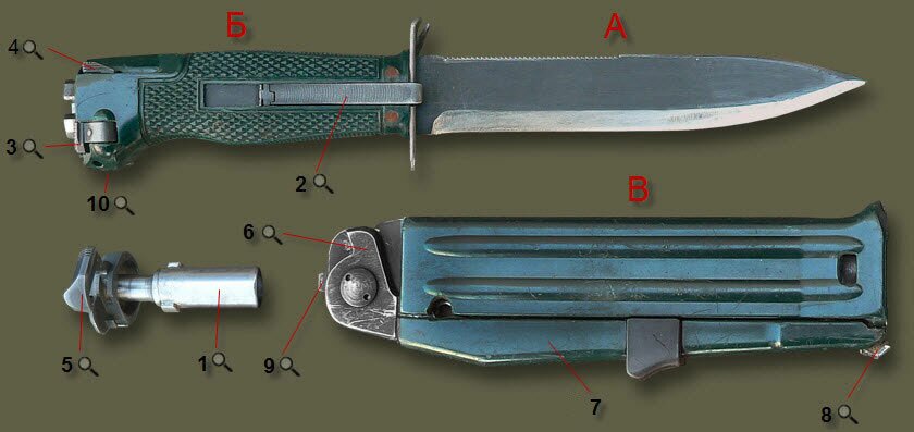Нож разведчика стреляющий НРС - 2 разработанный на Тульском оружейном заводе.