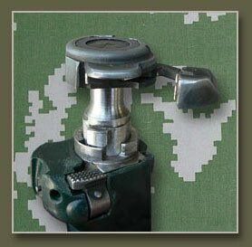Перекрестье-ограничитель рукоятки имеет с одной стороны прорезь - целик, соответственно, на конце рукоятки имеется металлическая мушка, регулируемая по высоте. С другой стороны перекрестье имеет отогнутый лепесток с лункой для извлечения стреляной гильзы из патронника после выстрела.
