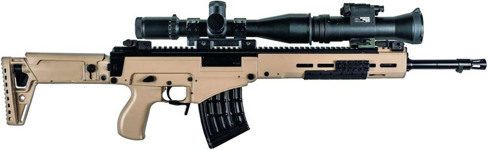 Винтовки под мощный винтовочный патрон сохранились на вооружении в основном в качестве снайперского оружия. Снайперская винтовка в своем развитии прошла несколько исторических этапов. Поначалу из партии обычных винтовок отбирали экземпляры, дававшие наиболее кучный бой, и прилаживали к ним оптические прицелы. Затем снайперские винтовки стали делать на основе штатных, внося небольшие изменения в конструкцию, но изготавливали их с повышенной точностью, специально для них разрабатывали и прицелы. Современная снайперская винтовка - это специально разработанный комплекс «патрон оружие прицел». Оптические прицелы, специальные снайперские патроны, изготовленные с повышенной точностью, улучшенная эргономика существенно повышают ее меткость. Одним из первых таких комплексов снайперского оружия стала советская винтовка СВД со снайперским 7,62 мм патроном и оптическим прицелом ПСО 1. К главным задачам армейских снайперов относятся поражение малоразмерных целей на дальностях до 600 м, а крупных - до 800 м. К важным целям, по которым должен работать снайпер, относятся командный состав, наблюдатели, связные, снайперы, расчеты группового оружия, экипажи танков противника, средства наблюдения и связи. Кроме того, снайпер может вести на дальности 1000-1200 м бес покоящий огонь, деморализующий противника, ограничивающий его передвижения, препятствующий работам по разминированию и т.п. В настоящее время среди вероятных целей снайпера все более становится защищенных, включая живую силу в средствах индивидуальной бронезащиты. Среди военных снайперских винтовок можно выделить два типа: винтовки для лучших стрелков (специальной разработки, или «эрзац снайперские» на основе автомата или ручного пулемета) и более точные винтовки для снайперов профессионалов. К вооружению снайпера профессионала предъявляются особые требования по точности и кучности стрельбы на большие дальности, достаточному пробивному действию пули. Современные армейские нормы предполагают величину отклонения попаданий не более одной угловой минуты, что составляет для различных дальностей стрельбы: на1000м - 29см, на500м - 14,5см, на300м - 8,7см, на100м - 2,9см. Для полицейских снайперских винтовок требования выше: если промах армейского снайпера может не иметь роковых последствий, то цена промаха полицейского снайпера - потеря заложника или ранение непричастного к инциденту человека. Можно выделить два основных подхода к разработке снайперских винтовок. Первый заключается в сочетании в образце свойств специального целевого оружия с такими общими качествами, как скорострельность, маневренность, возможность использования в ближнем бою (вплоть до рукопашной), надежность. Такие винтовки выполняются обычно самозарядными - именно такие старались создавать в 1950 - 60-е годы (СВД, М21), однако по меткости они несколько уступают магазинным. Система автоматики усложняет и утяжеляет оружие, увеличивает его размеры, шумность работы, ударные нагрузки, особенно при мощном патроне. Второй подход основывается на отношении к снайперской винтовке как к узкоспециальному оружию. Поэтому значительная часть современных снайперских винтовок (американские М24 и М40А1, британская Л96А1 (L96A1), германская «Маузер» СР96 (SR96), финская TРГ 1 (TRG 1)) выполнена по магазинной схеме с использованием конструктивных черт 