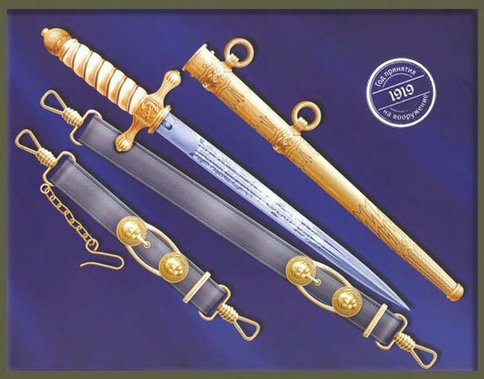 Тип: Кортик морского офицера (модель 1919 года). Был учрежден для ношен всеми морскими офицерами, а также кадетами, с одной оговоркой, что последние не имели право носить его вместе с портупеей.